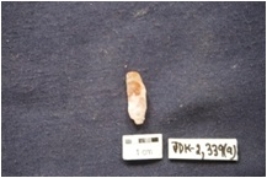 | Description / विवरण | Blade, made on Chert, prepared platform along proximal end, ridge on dorsal side, diffused bulb on ventral side. |