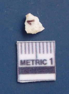 | Description / विवरण | It is a blade fragment. The sides are sharp and retouched. It is white in colour. The striking platform and the bulb of percussion is clearly visible. The flake scars are clearly seen on the dorsal surface while the ventral surface is plain. |