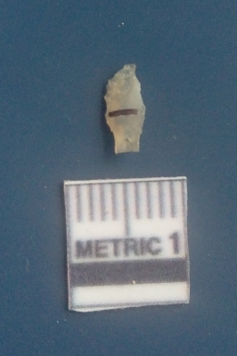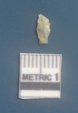 | Description / विवरण | It is a blade fragment. The sides are sharp and retouched. It is white in colour. The striking platform and the bulb of percussion is clearly visible. The flake scars are clearly seen on the dorsal surface while the ventral surface is plain. |