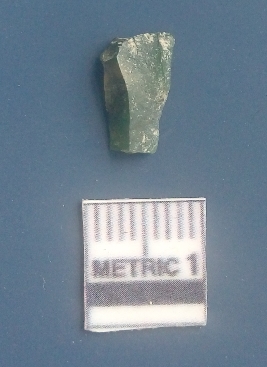 | Description / विवरण | It is a blade fragment. The sides are sharp and retouched. It is greenish in colour. The striking platform and the bulb of percussion is clearly visible. The flake scars are clearly seen on the dorsal surface while the ventral surface is plain. |