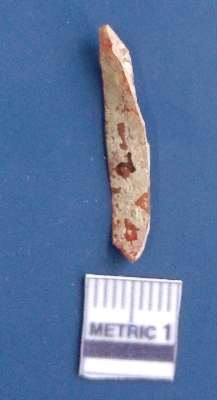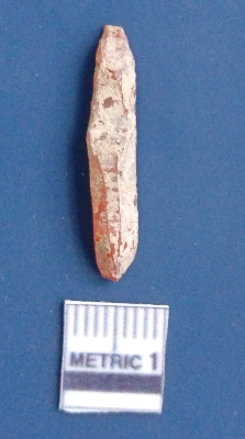 | Description / विवरण | It is a blade fragment. The sides are sharp and retouched. It is orangish in colour. The striking platform and the bulb of percussion is clearly visible. The ridges are clearly seen on the dorsal surface while the ventral surface is plain. The soil incrustations are clearly seen on the surface. |