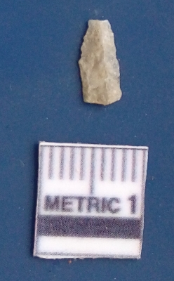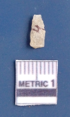 | Description / विवरण | It is a blade fragment. The sides are sharp and retouched. It is white in colour. The striking platform and the bulb of percussion is clearly visible. The ridges are clearly seen on the dorsal surface while the ventral surface is plain. It is triangular in cross - section. |