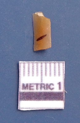 | Description / विवरण | It is a blade flake. The sides are sharp and retouched. It is yellowish white in colour. The striking platform and the bulb of percussion is clearly visible. The flake scars are clearly seen on the dorsal surface while the ventral surface is plain. |