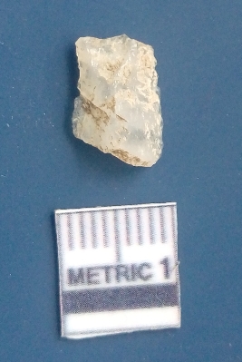 | Description / विवरण | It is a blade flake. The sides are sharp and retouched. It is white in colour. The striking platform and the bulb of percussion is clearly visible. The flake scars are clearly seen on the dorsal surface while the ventral surface is plain. |