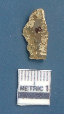 | Description / विवरण | It is a blade flake. The sides are sharp and retouched. It is yellowish white in colour. The striking platform and the bulb of percussion is clearly visible. The flake scars are clearly seen on the dorsal surface while the ventral surface is plain. It is triangular in cross - section. |