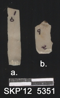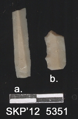 | Description / विवरण | Broken chert, rectangular in structure and the ridges can be seen clearly. The sides are sharp and retouched. The ventral surface is plain. |