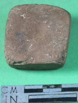 | Description / विवरण | It s a square shape weight showing semi circular lines on top of exterior. Its colour is red. It has rough surface. |