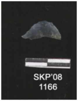 | Description / विवरण | Lunate, it is made up of quartz, small flaks have been removed. Retouching can be also seen. The edges are sharp. |