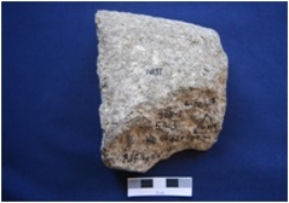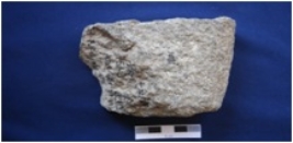 | Description / विवरण | Fragment of a Rubbing stone, made on coarse grained sand stone, rectangular in shape, smooth surface on one side and rough on the other side. |
