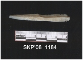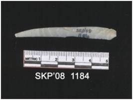 | Description / विवरण | Pen knife blade, it is made up of chert, the sides edges are sharp, and the ridges can be seen clearly. |