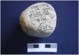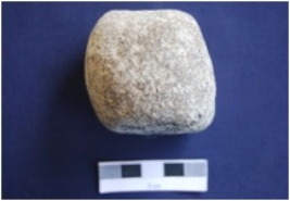 | Description / विवरण | An irregular shaped Hammer stone, made on Sandstone, pitting marks on the surface. |