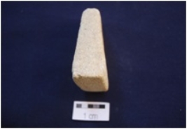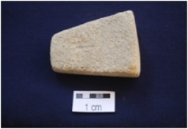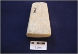| Description / विवरण | A trapezium-Shaped scrubber, made on Sandstone, Edges are even and well shaped, broad along one end. |