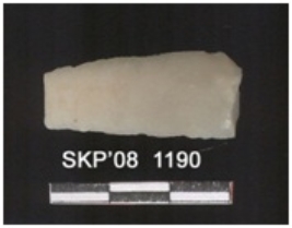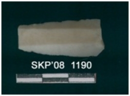 | Description / विवरण | Broken chert blade. It is smooth and polished. The ridges can be seen clearly. Retouches can be seen on both sides. It is rectangular in cross section on one side white it is trapezium in cross section. |