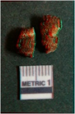 | Description / विवरण | The iron nail piece is broken into two pieces, and is moderately rusted with angular edges. The piece are cylindrical, with no identifiable tapering or bulbous end. |