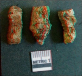 | Description / विवरण | The there cylindrical pieces are a part of an iron nail. No shaper or blunt end can be determined from the current state of the pieces. The rusted, probably due to pronged deposition. |