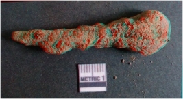 | Description / विवरण | The iron nail has a bulbous head and a tapering end with numerous surface encrustations. The piece is a part of construction fittings required in building activity. |