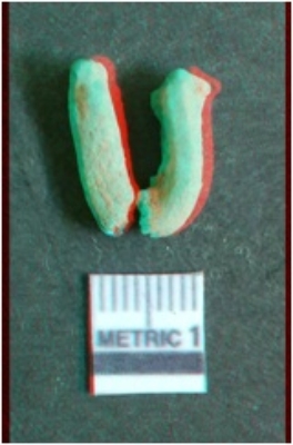 | Description / विवरण | It is a U shaped hook like lead object. It is broken in two pieces but when refitted, original shape and size can be determined. Use is debated. |