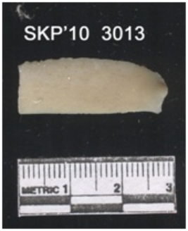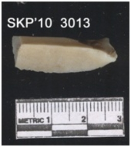 | Description / विवरण | Broken chert blade, it is rectangular in structure and is trapezium in cross section. The ridges can be seen clearly and the sides are sharp and retouched. |