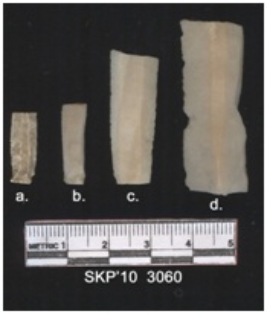 | Description / विवरण | Broken chert blade. It is rectangular in structure. The ridges can be seen clearly. The side is retouched. The ventral surface is plain. Triangular in cross section. |