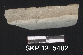 | Description / विवरण | Broken chert blade, it is rectangular in structure and one side is broken. The ridges can be seen clearly. The sides are retouched. It is trapezium in cross section. |