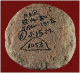 | Description / विवरण | Trench XAW 19, Qdt 2, layer 6, depth 215 cm It is a disc made of stone. Shape is circular and surface is coarse and deep brown. Margin is rubbed off and damaged. |