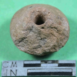 | Description / विवरण | It is a standard sized terracotta spindle whorl with bicone shape.showing transverse whole in center.slightly broken from one side.Its colour is red smooth surface. |