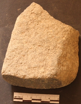 | Description / विवरण | The grinding stone has a oblique end and angular edges due to use ware. |