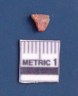 | Description / विवरण | It is a blade fragment. The sides are sharp and retouched. It is orangish in colour. The striking platform and the bulb of percussion is clearly visible. The flake scars are clearly seen on the dorsal surface while the ventral surface is plain. |