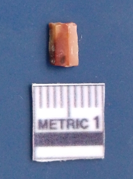 | Description / विवरण | It is a blade fragment. The sides are sharp and retouched. It is brownish in colour. The striking platform and the bulb of percussion is clearly visible. The flake scars are clearly seen on the dorsal surface while the ventral surface is plain. |