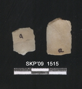 | Description / विवरण | Broken chert blade. The ridges can be clearly seen. Retouching can be also seen, it is triangular in cross section. |