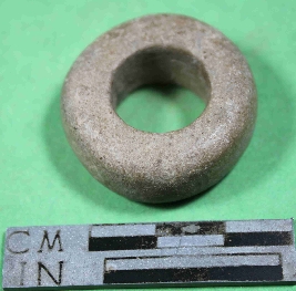 | Description / विवरण | It is a circular shaped net sinker, showing central transvers hole in the center, dull red in colour and smooth surface. |