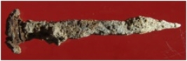 | Description / विवरण | Trench XAX 19, Qdt 1, layer 1, depth 35 cms It is an iron nail with pointed pin. Badly deformed and rusted. |