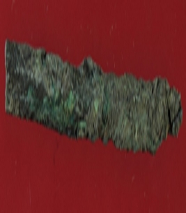 | Description / विवरण | Trench XQ-1, Qdt I, layer 5, depth 270 cms This is a antimony rod made of copper. Hard patina is deposited on it. It is badly corroded. Color is greenish. |