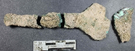 | Description / विवरण | Broken copper arrowhead with pointed head with triangular in shape and having platina. |