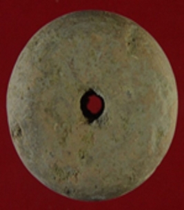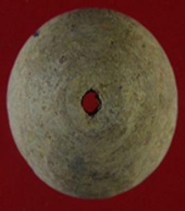 | Description / विवरण | Trench XO 3, Qdt 1, layer 1, depth 20 cms This is a bead made of terracotta. Shape is hemispherical and surface is rough with brick brown appearance. There is a hole through it. |