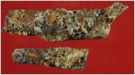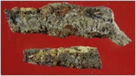| Description / विवरण | Trench XAW 19, Qdt 2, layer 13, depth 430 cms It is a part of clamp made of iron. Badly deformed and corroded. Broken into two pieces. |