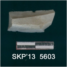 | Description / विवरण | Broken chert blade. It is rectangular in structure and it is trapezium in cross section. The ridges can be clearly seen. |
