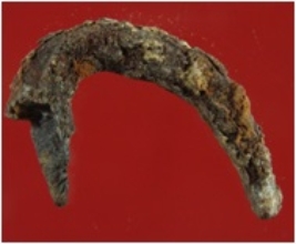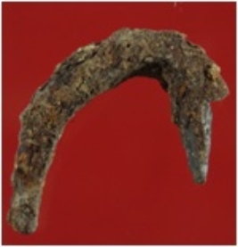 | Description / विवरण | Trench XAX 19, Qdt 1, layer 3, depth 125 cms It is an iron nail, bent in the middle and badly deformed & rusted. |