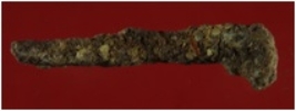 | Description / विवरण | Trench XC 8, Qdt 4, layer 27, depth 785 cms It is an iron nail. Badly deformed and rusted. |