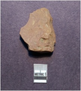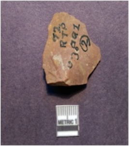 | Description / विवरण | It is a chert flake fragment having positive bulb of percussion on the ventral side with sharp edges and pointed ends. Brownish in color. |