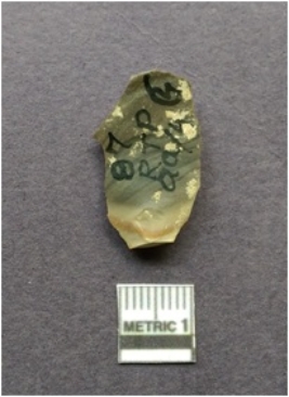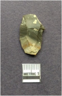 | Description / विवरण | It is a chert blade having positive bulb of percussion on the ventral side. Having sharp lateral margin. Flake scars with ripples on the surface. |