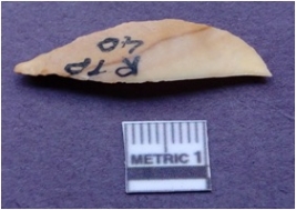 | Description / विवरण | It is a chert fragment, it is in a leaf shape. Flake scars on the surface with retouch done on the working edge. |