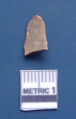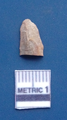 | Description / विवरण | It is a blade fragment, having two parallel sharp lateral margins with positive bulb of percussion on the ventral side, prominent flake scars on the surface. |