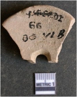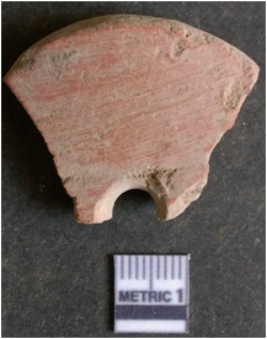 | Description / विवरण | The terracotta spindle whorl piece is centrally perforated and a quarter piece has survived. The piece is well fired with remnant of some red slip on the surface. |