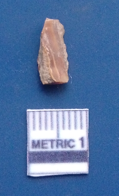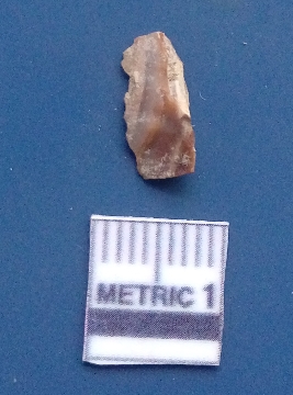 | Description / विवरण | It is a blade fragment, having two parallel sharp lateral margins with positive bulb of percussion on the ventral side, prominent flake scars on the surface. |