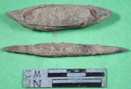 | Description / विवरण | A Complete cylindrical shape bone point, having both ends are pointed and light yellow in colour. B fragment of cylindrical shape bone point, having one end is pointed and other side of the end has broken, it is brown in colour. |