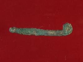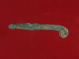 | Description / विवरण | Trench XO-3, Qdt II, layer 2, depth 60 cms This is a nail made of copper. It is bent from the top. Hard patina is deposited on it. Color is greenish. |