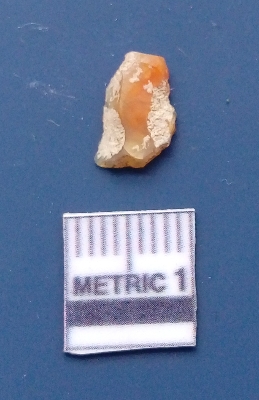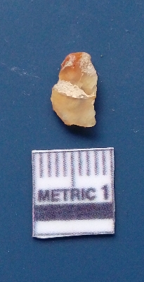 | Description / विवरण | It is a chalcedony blade which is partially broken and is partially sharp on its edge, it has been retouched having flake scars on its surface. |