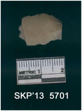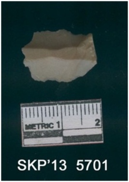 | Description / विवरण | Broken chert blade. It is triangular in cross section. The ridges can be clearly seen. |