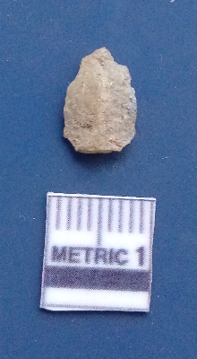 | Description / विवरण | It is a blade fragment with two sharp parallel sides and lateral margin with the working edges. The bulb of percussion is present ventral side with ripple on it due to flaking. It has flake scars on the surface. |